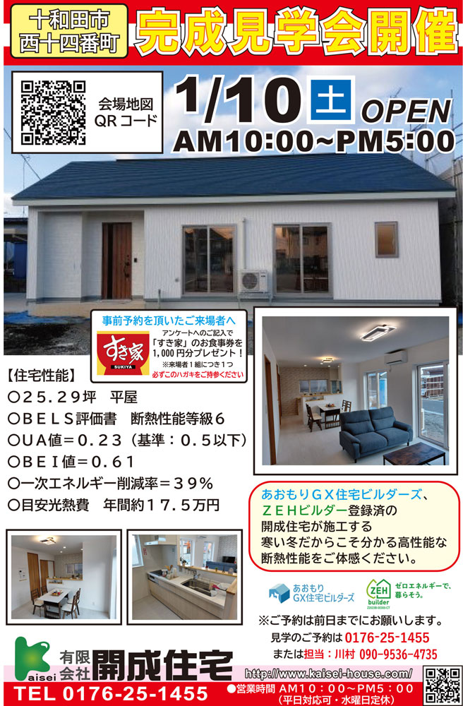 1月10日(土)~ 十和田市西十四番町にて完成見学会を開催中です!