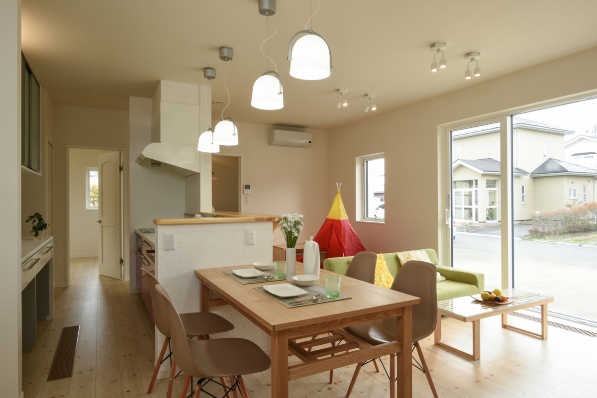 時代が求める省エネ&創エネの家W断熱とトリプルサッシの採用により県内トップクラスの省エネ性能を実現しました。一年中春のような心地よい家です。28坪、3LDK
