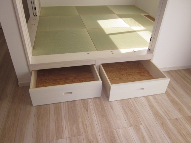 小上がり和室の下は引き出し収納として使えます
