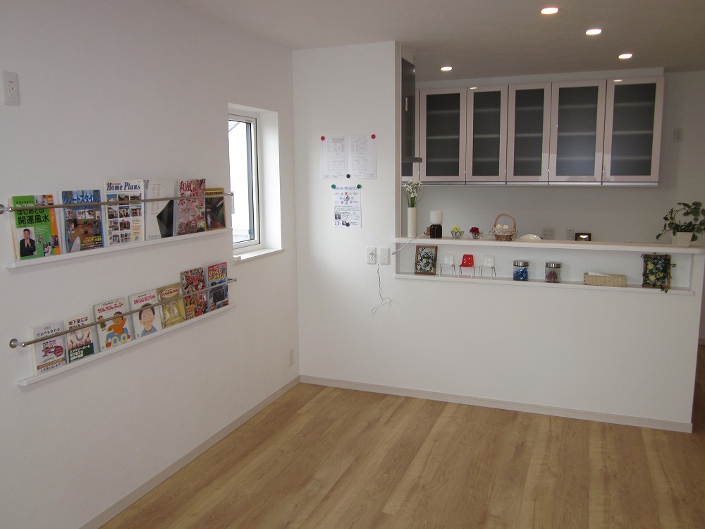 壁には手作りの本棚