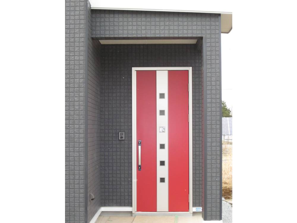 黒い外壁に赤い玄関ドアはかっこいいですね