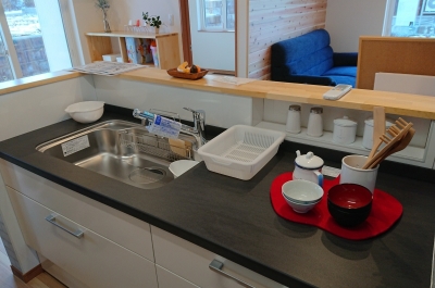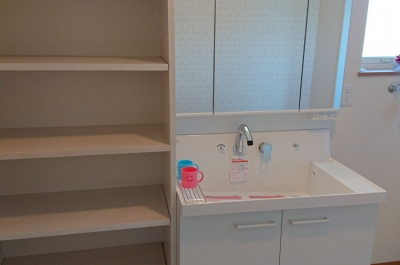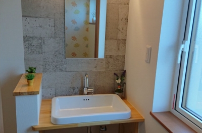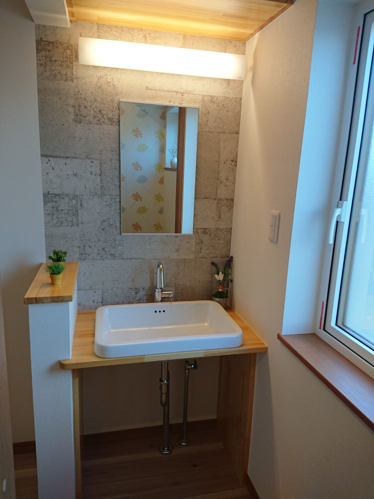 玄関を入ったらすぐに、手洗いカウンターを造作しました。