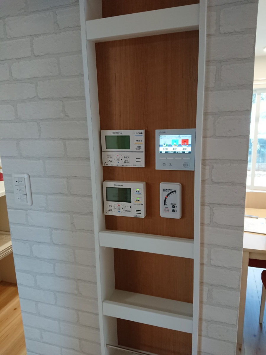 リモコン類もすっきり収納できる、埋め込み収納