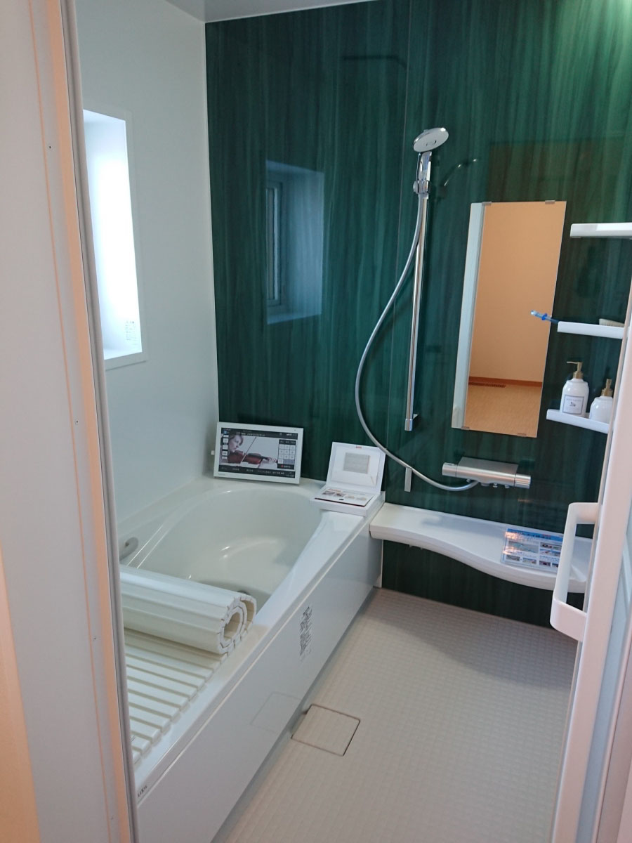 お風呂のアクセントパネル、かっこよく決まりました。