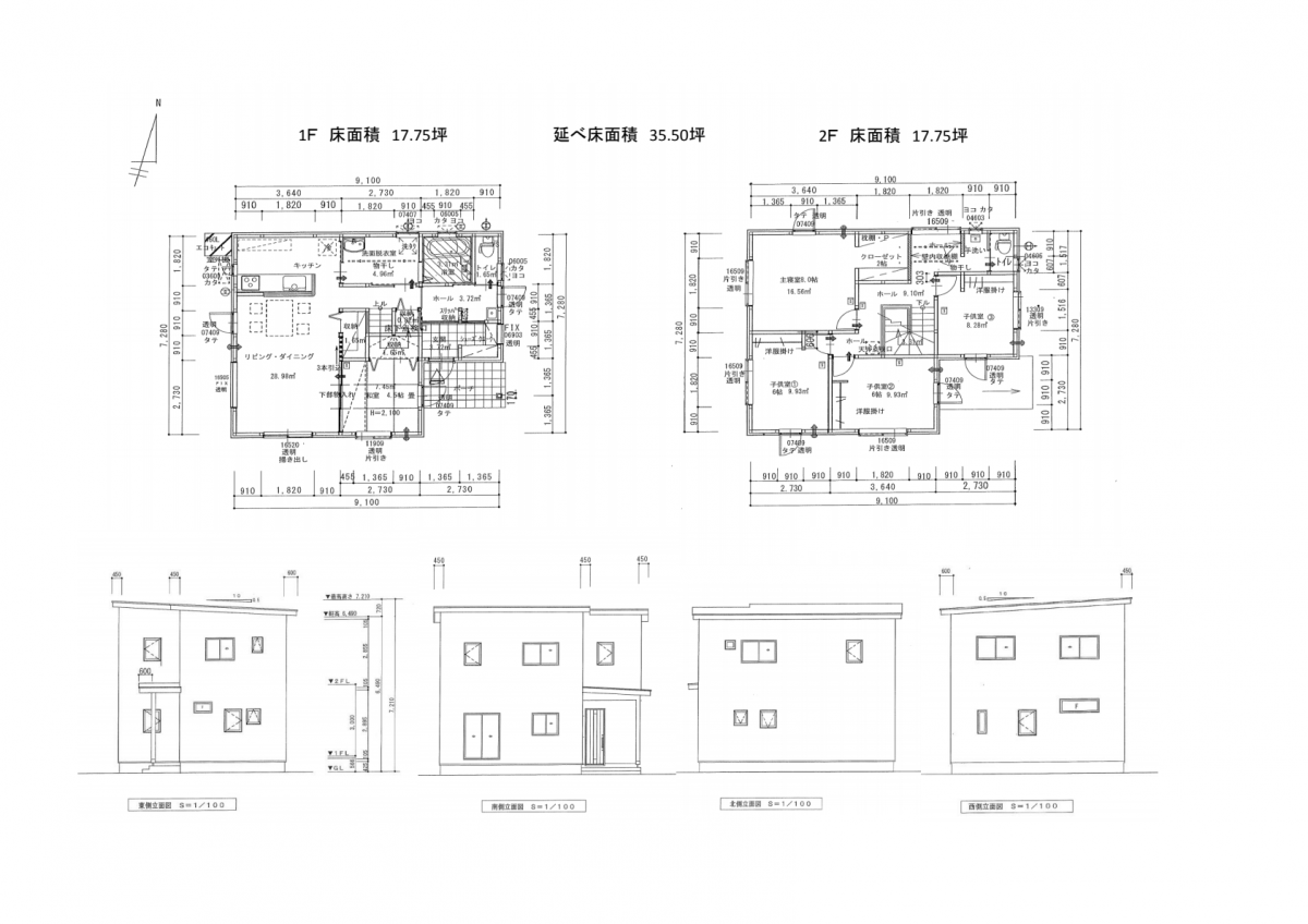 35.5坪の床面積で5LDKの無駄のない間取りと、性能向上計画認定で