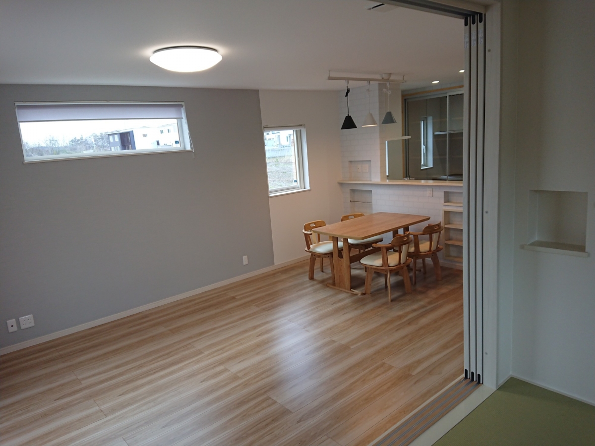 小上がりから見たリビングは、開放感のある空間に仕上がりました。