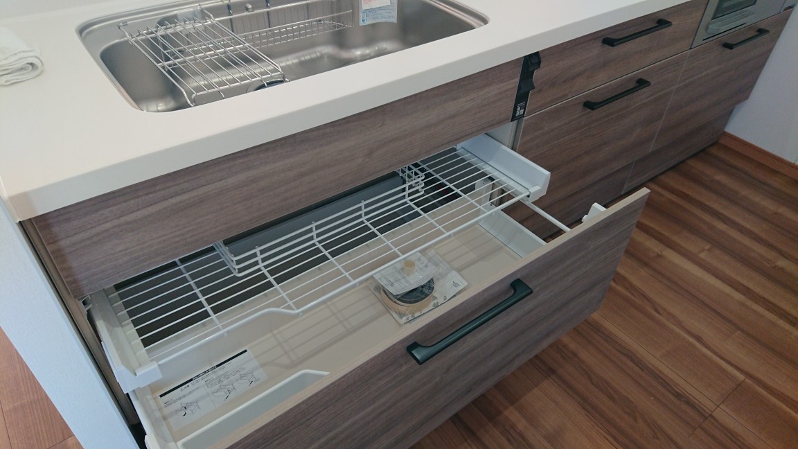 キッチンには、奥様方に大好評のスライドストッカー、アシストポケット、シェルフ付と