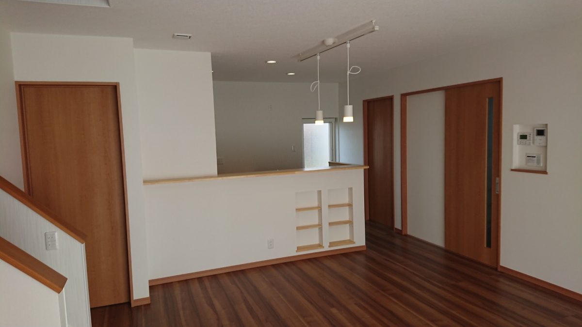 ゆったり感のあるダイニングキッチンには、お施主様ご希望の食品庫と勝手口