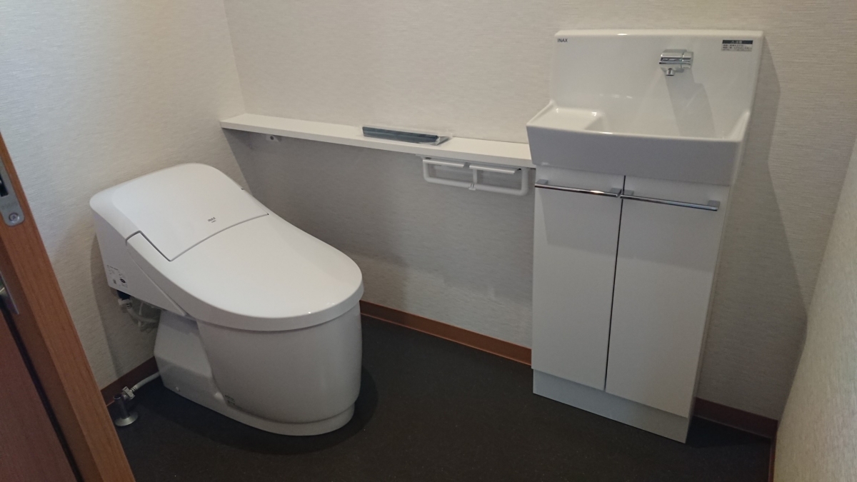 1階のトイレは、標準よりもちょっと広めにして手洗いカウンターをつけました。