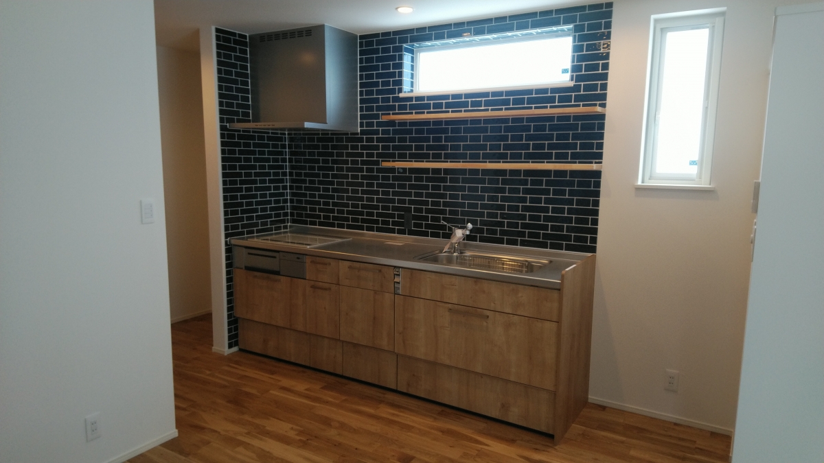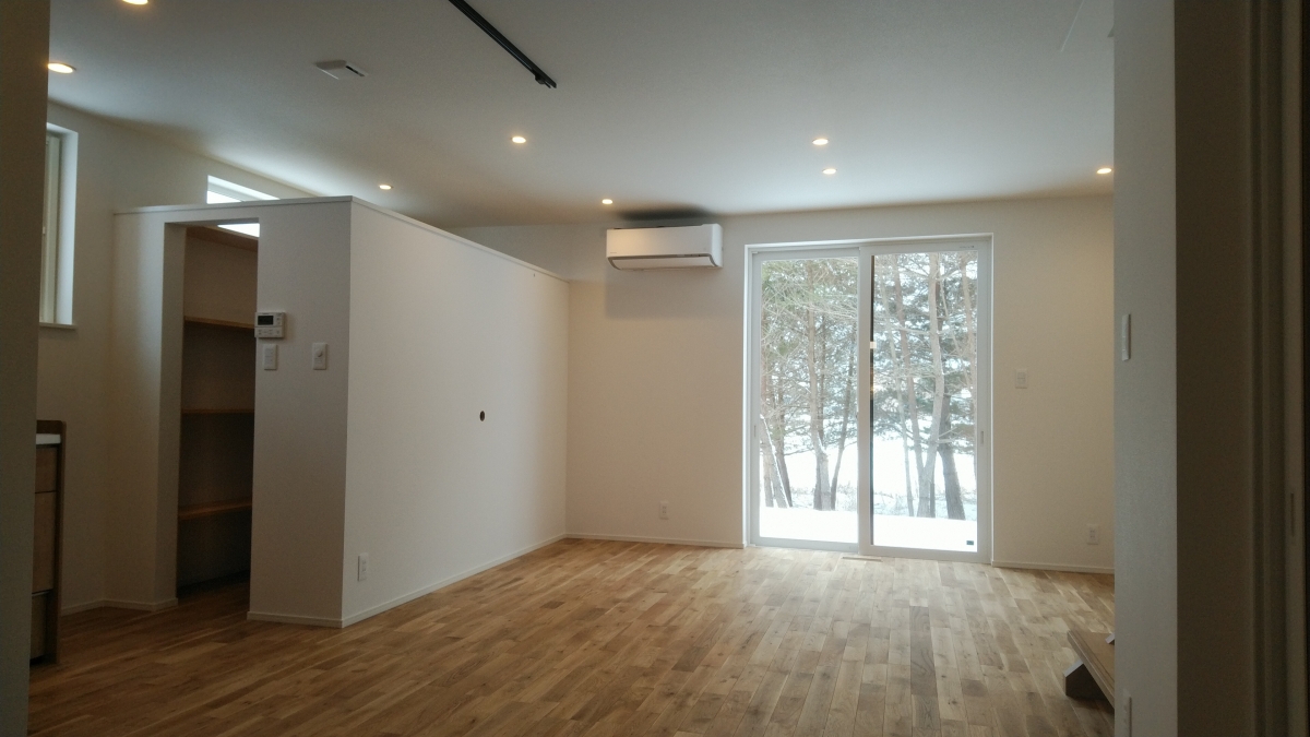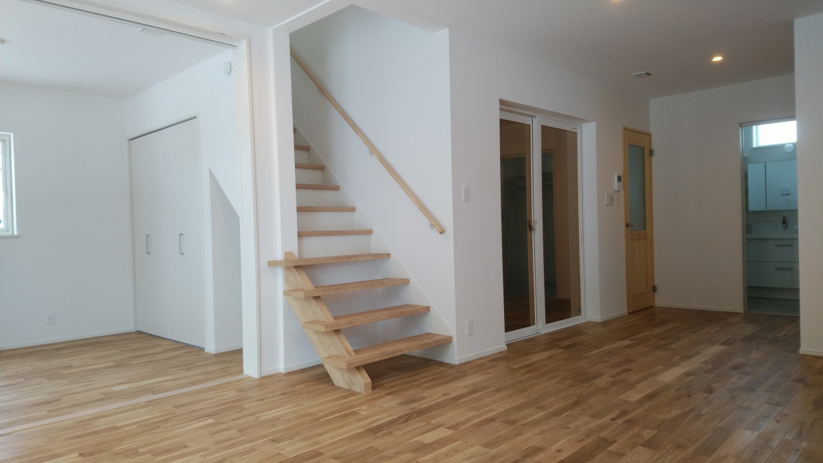 1階の床には味わい深いオーク(ナラ)材の無垢フローリグを使用