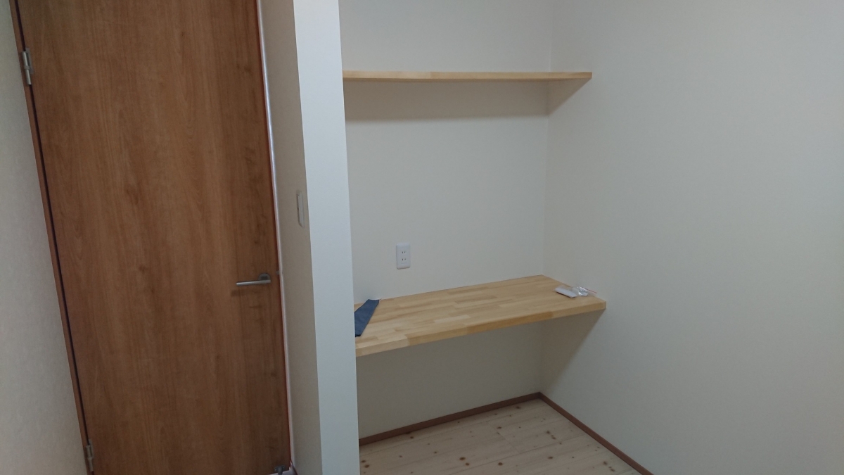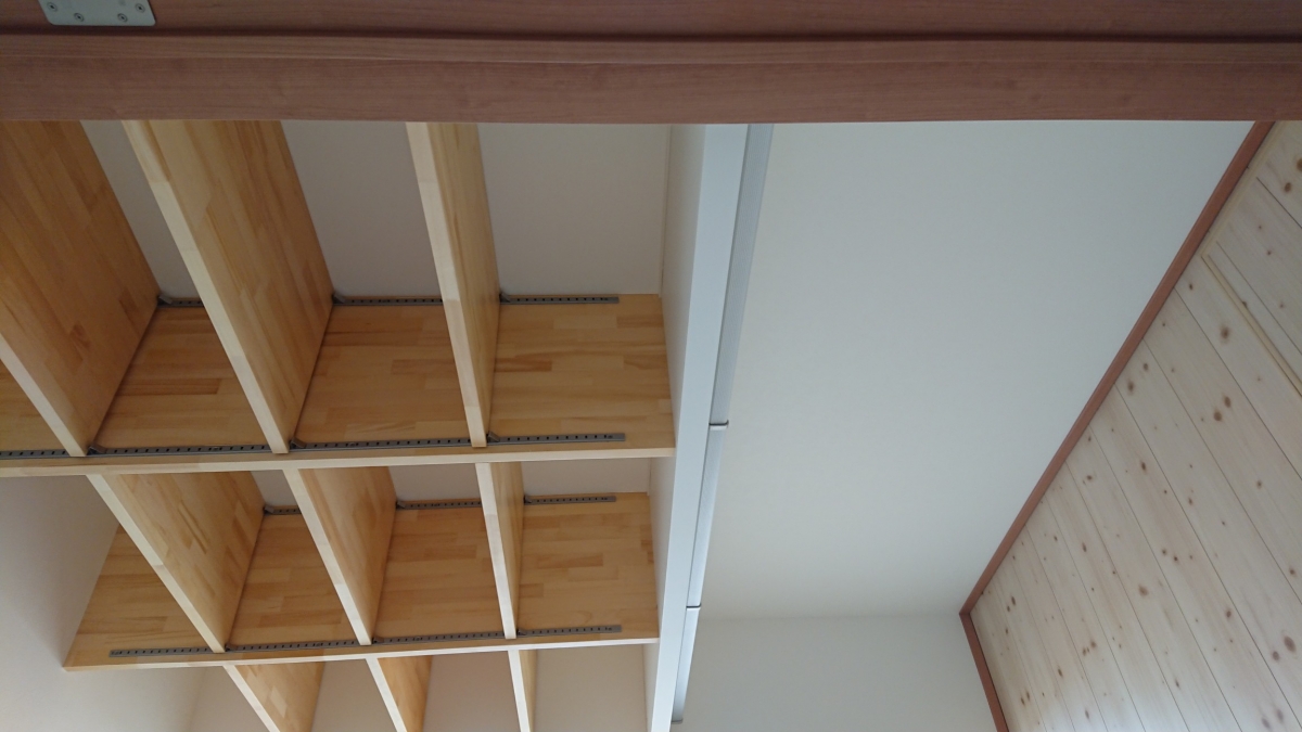 WICは上部に可動棚を造作して、枕棚(ハンガーパイプ付き)を下部に取り付けました。