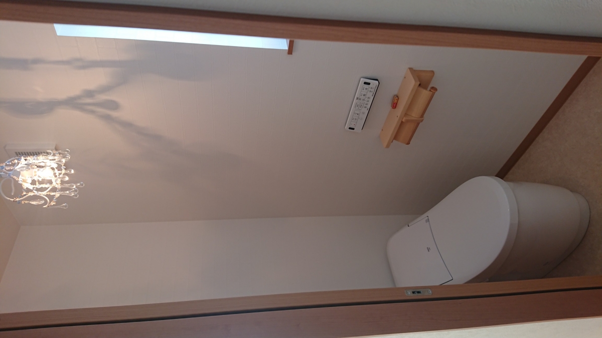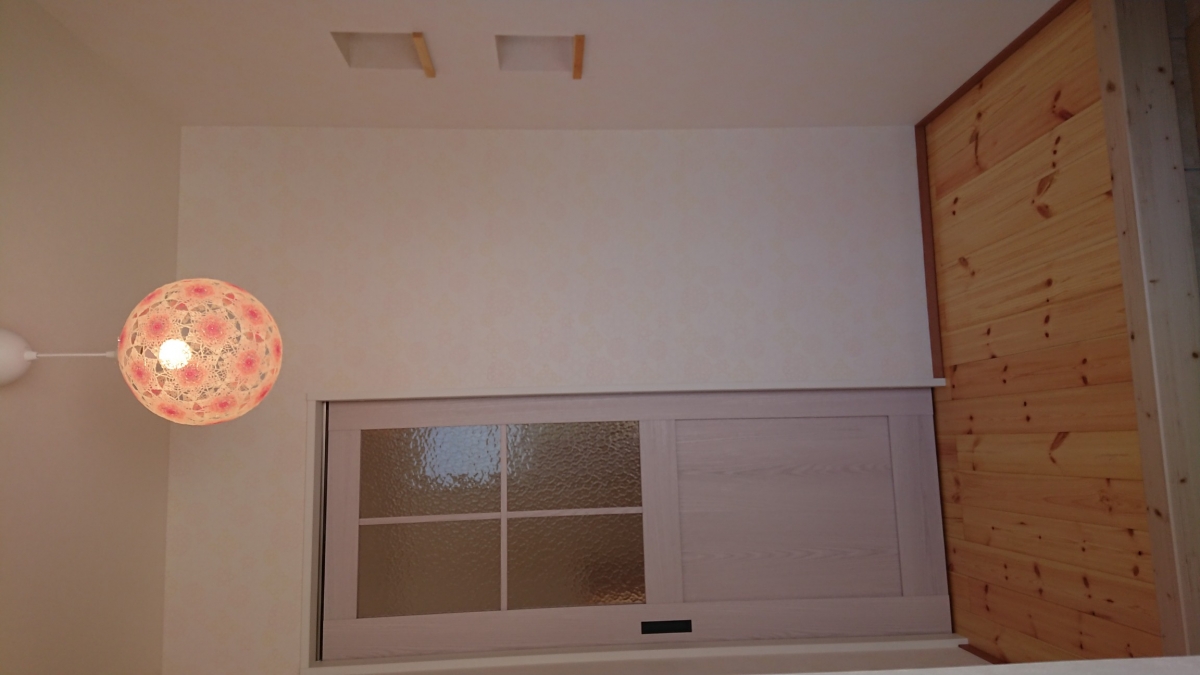 玄関ホールはかわいいクロスとお施主様支給の照明でお出迎え。