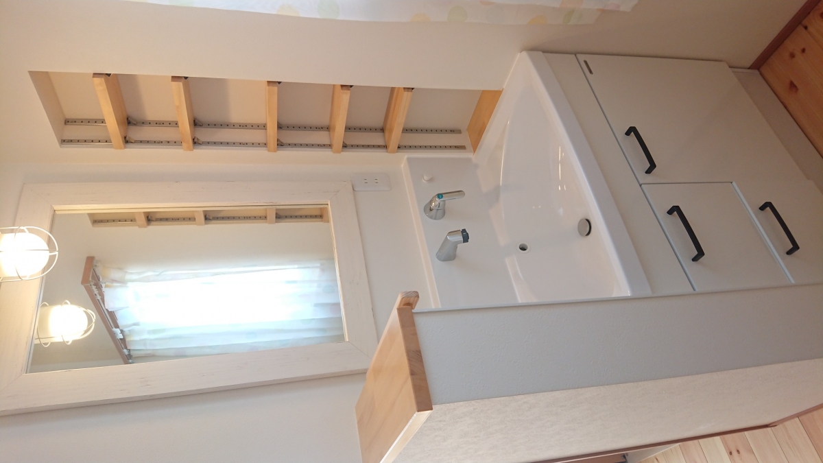 洗面も支給のカガミとニッチ造作でいい感じに仕上がりました。