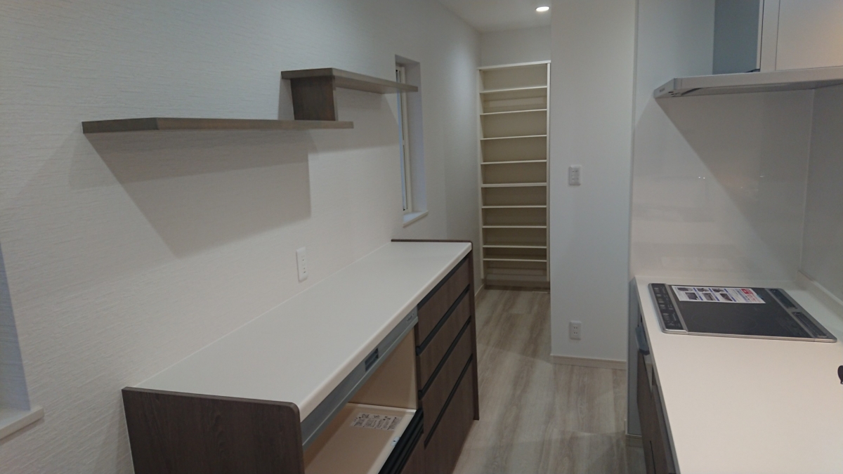 キッチンの奥にはパントリーもあり、たっぷり収納できますよ。