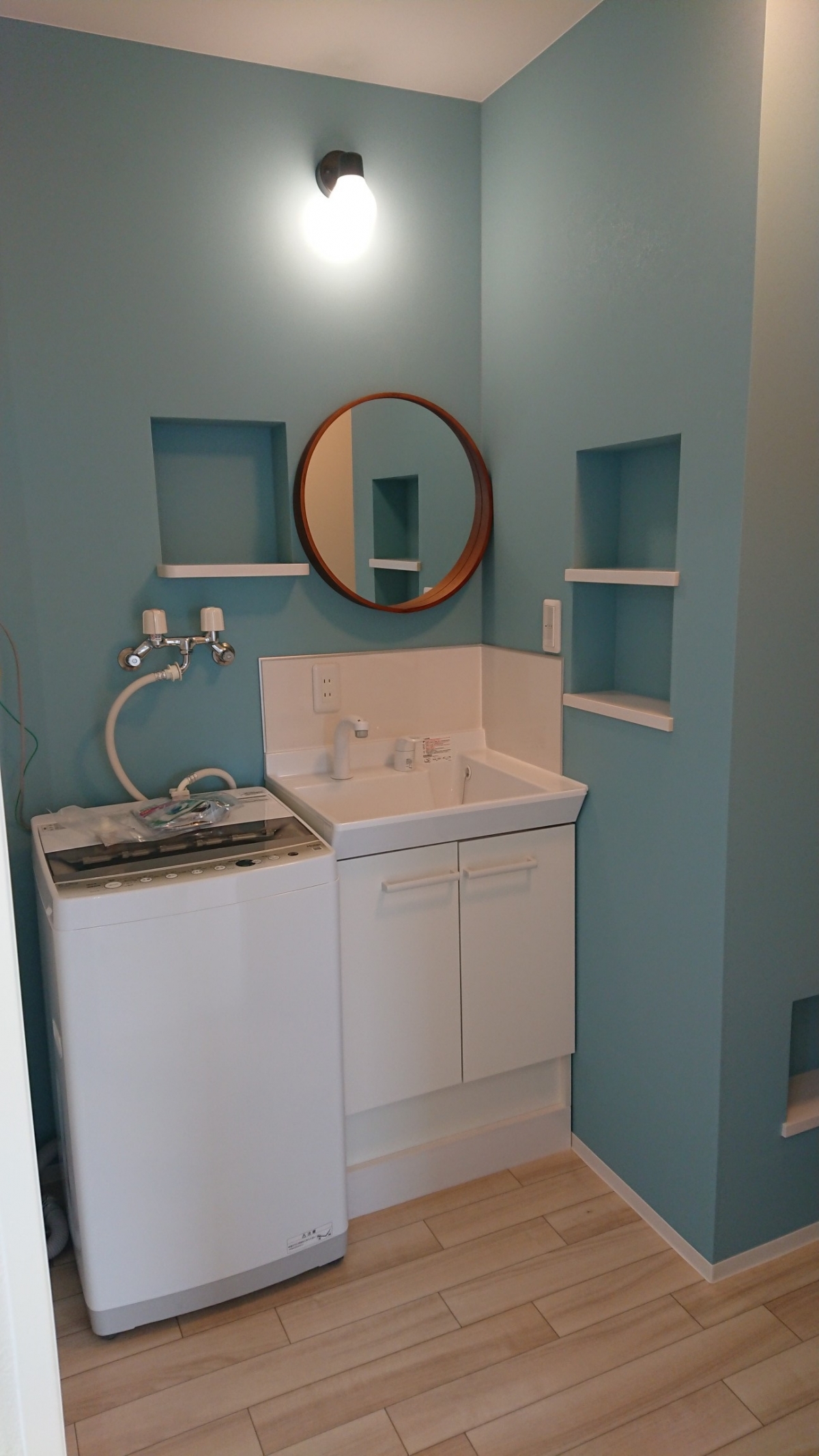 洗面、洗濯機周りにもニッチ造作で収納量アップです。