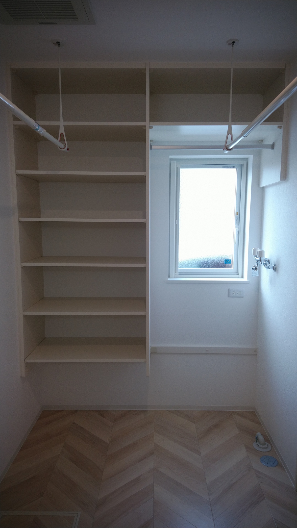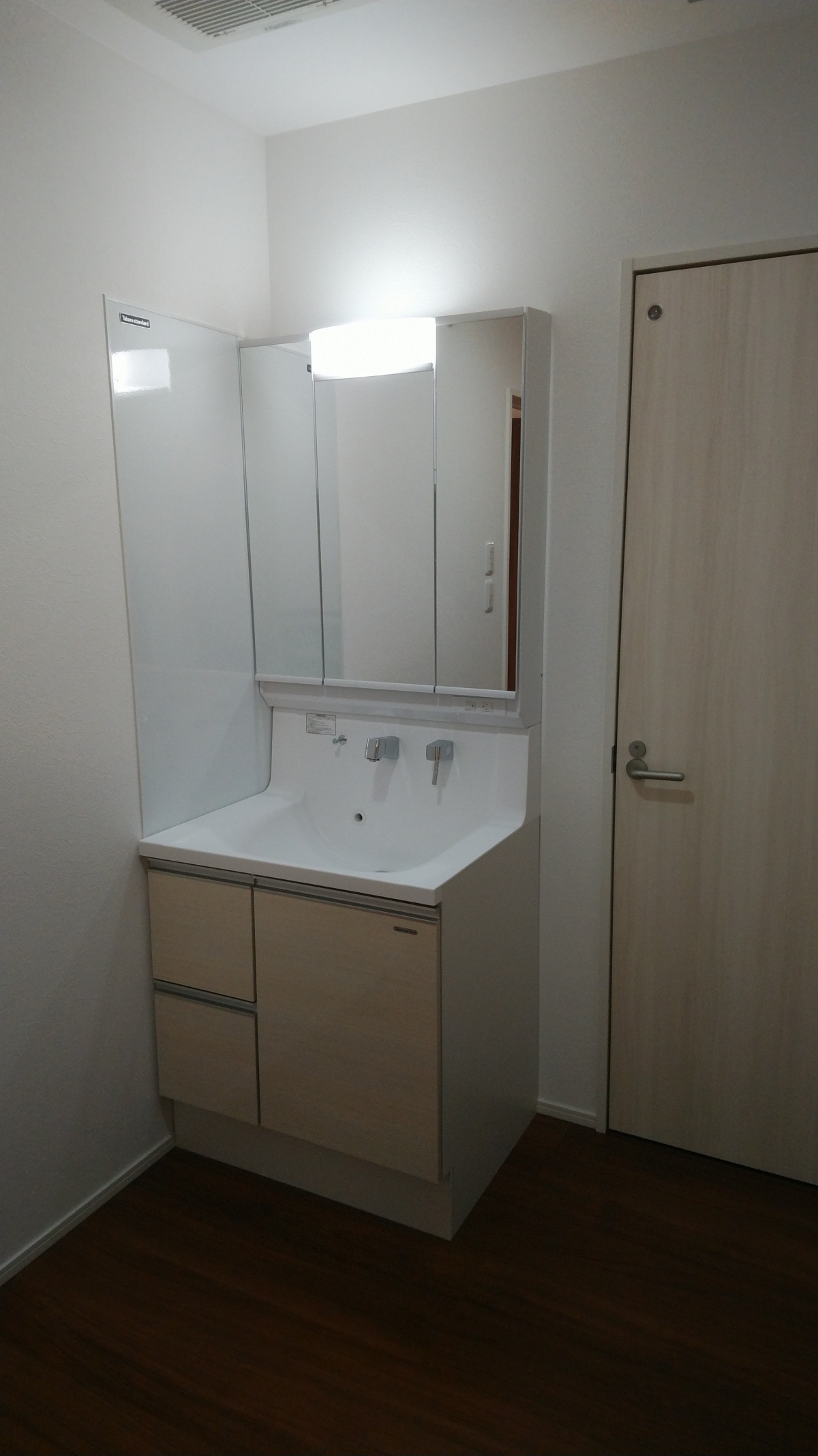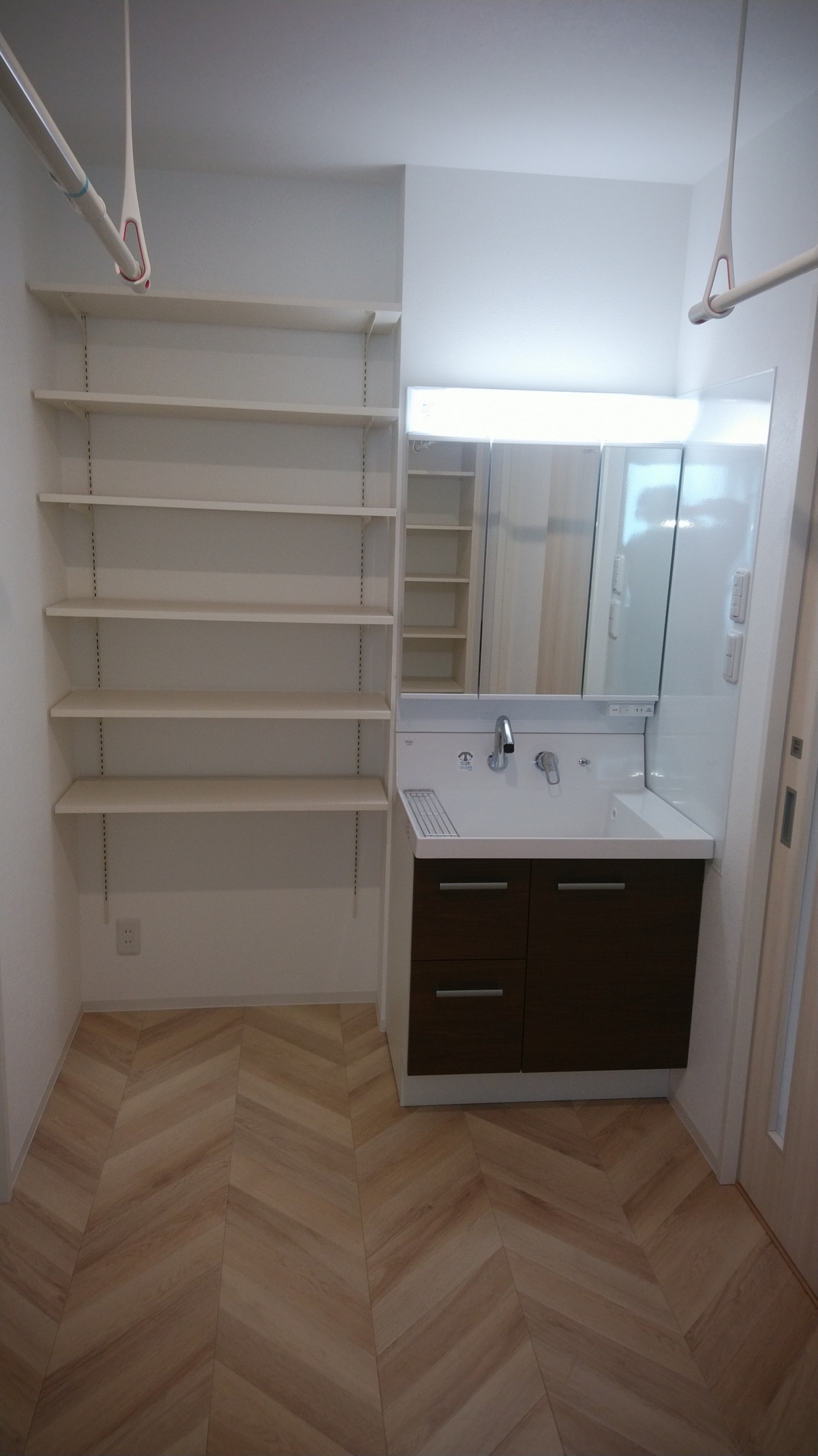 洗面室には収納棚がたっぷり リクシル製の洗面化粧台