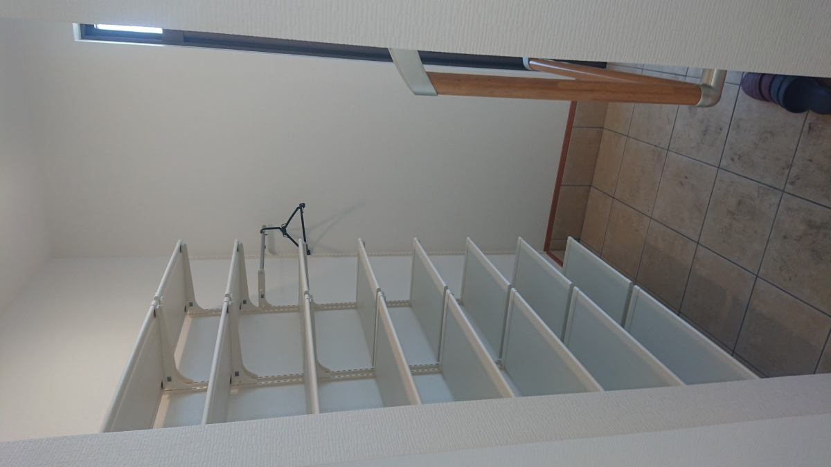 シューズクロークに手すりを付けて、靴を履いてからの立ち上がりも楽になります。