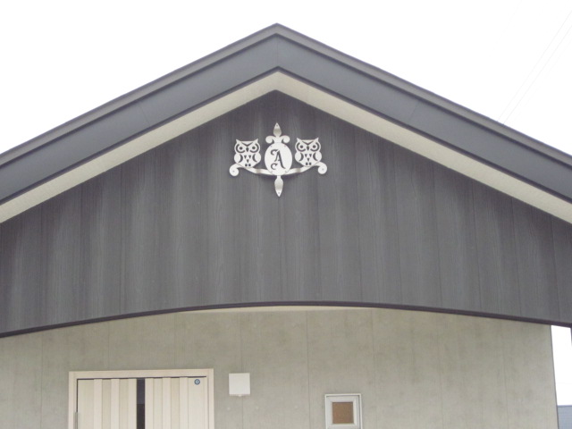 なんと、妻飾りのイニシャルは愛犬の名前でした