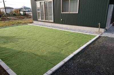 人工芝は自分たちで敷いたので、継ぎ目が見えるのはご愛敬