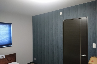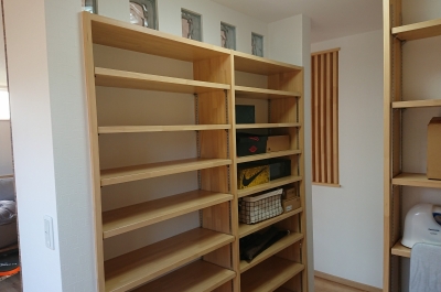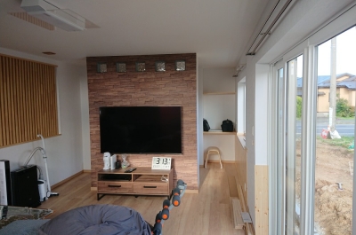 壁掛けテレビの後ろには、奥様こだわりのリビングクローク